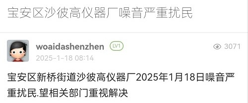 18. 帖文《宝安区沙彼高仪器厂噪音严重扰民》