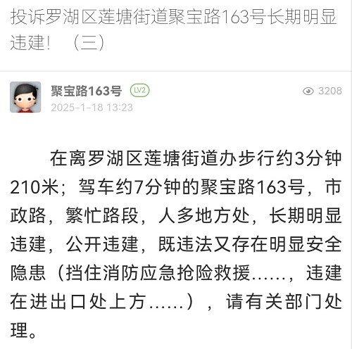 13. 帖文《投诉罗湖区莲塘街道聚宝路163号长期明显违建!(三)》