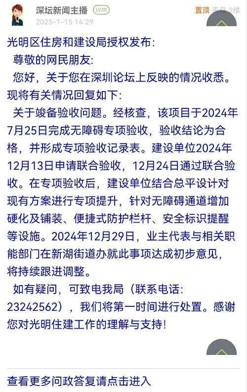 如有疑问,可致电我局(联系电话:23242562),我们将第一时间进行处置。感谢您对光明住建工作的理解与支持!