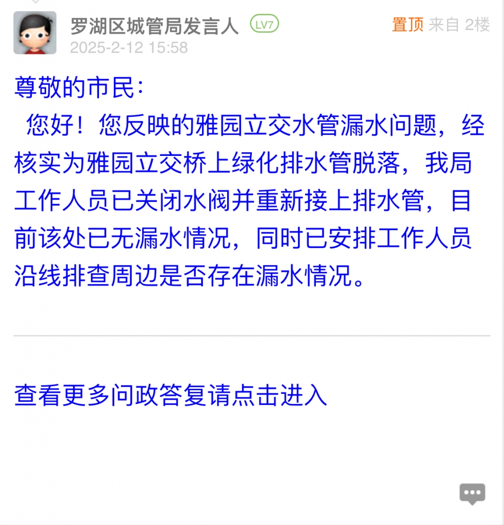 各职能单位如需对网友反映的问题进行回应,可在深圳论坛注册官方账号并通过认证,回帖进行回应。