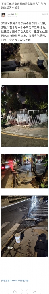 10. 帖文《罗湖区东湖街道翠荫路翡翠园大门前马路生活污水横流》