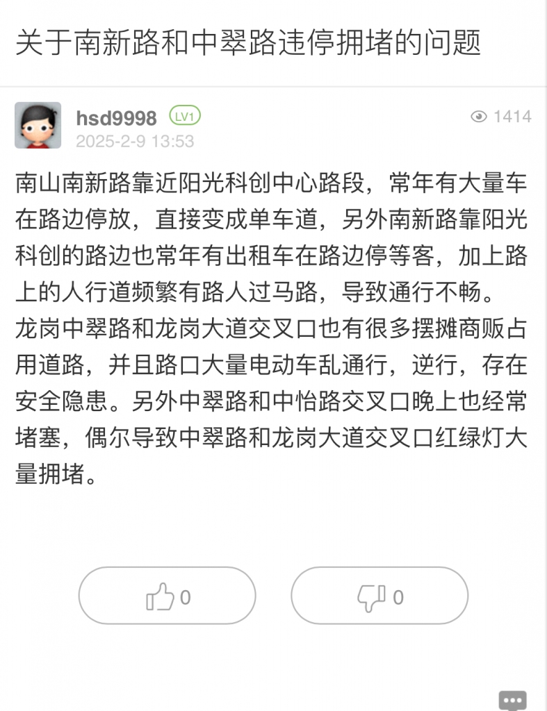 7. 帖文《关于南新路和中翠路违停拥堵的问题》