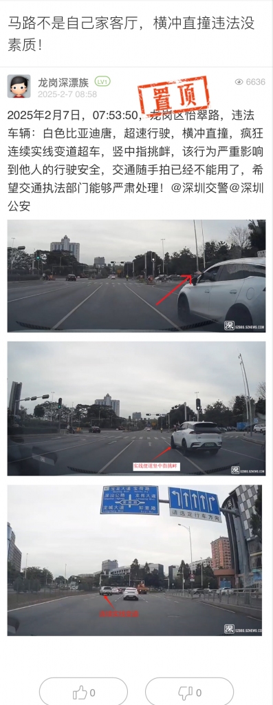 4. 帖文《马路不是自己家客厅,横冲直撞违法没素质!》