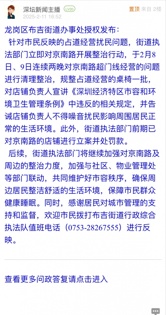 5. 帖文《布吉占道经营扰民又出现》