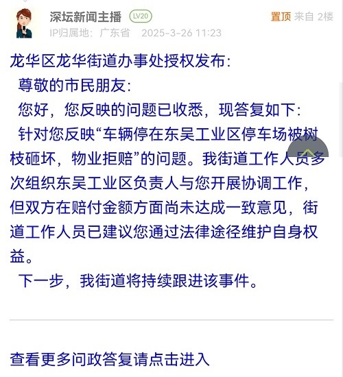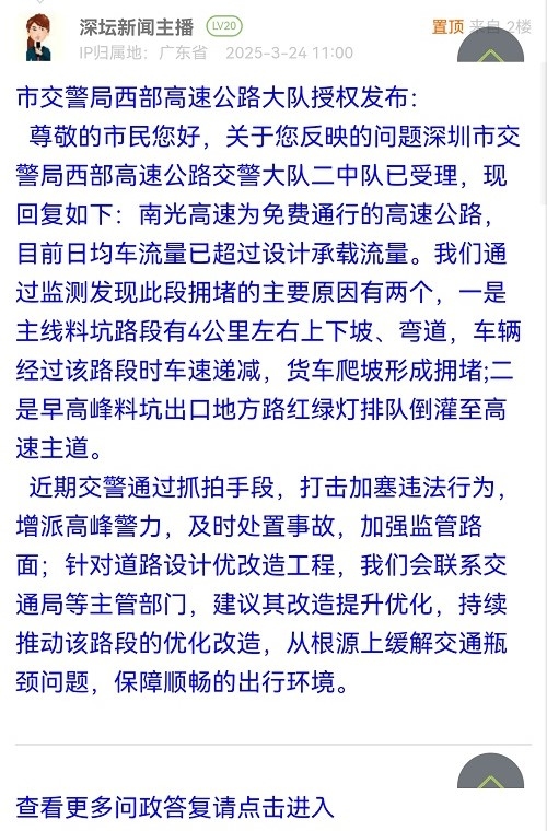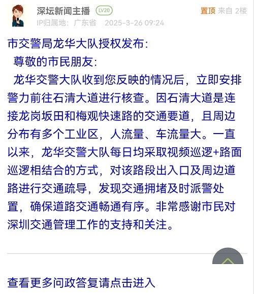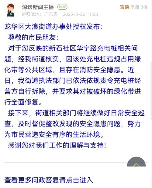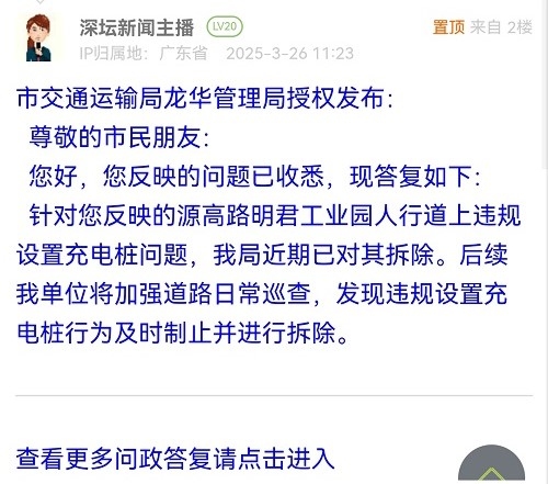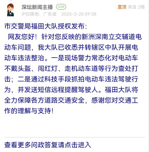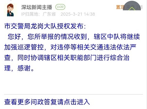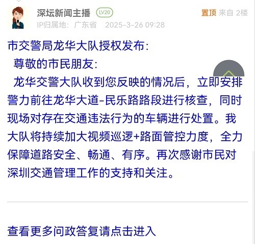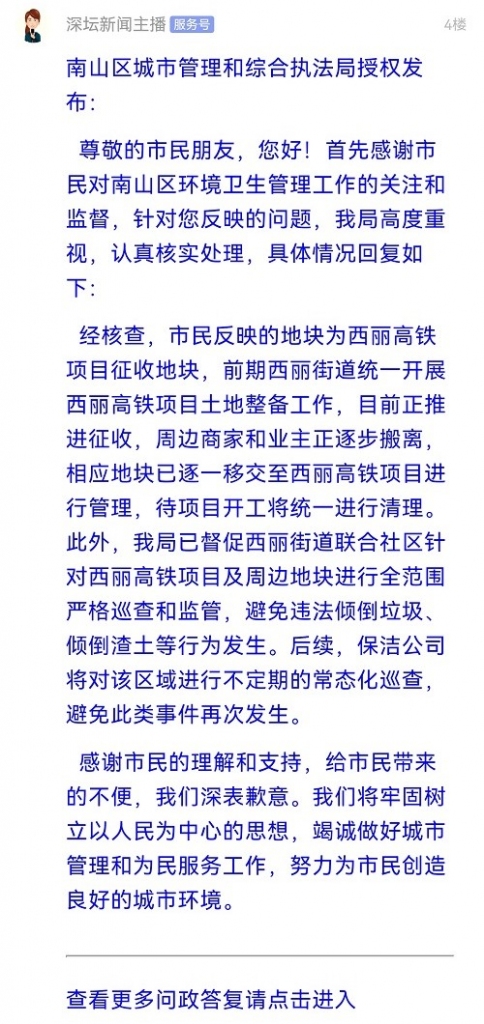 各职能单位如需对网友反映的问题进行回应,可在深圳论坛注册官方账号并通过认证,回帖进行回应。