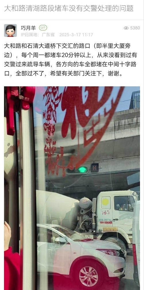 24. 帖文《大和路清湖路段堵车没有交警处理的问题》