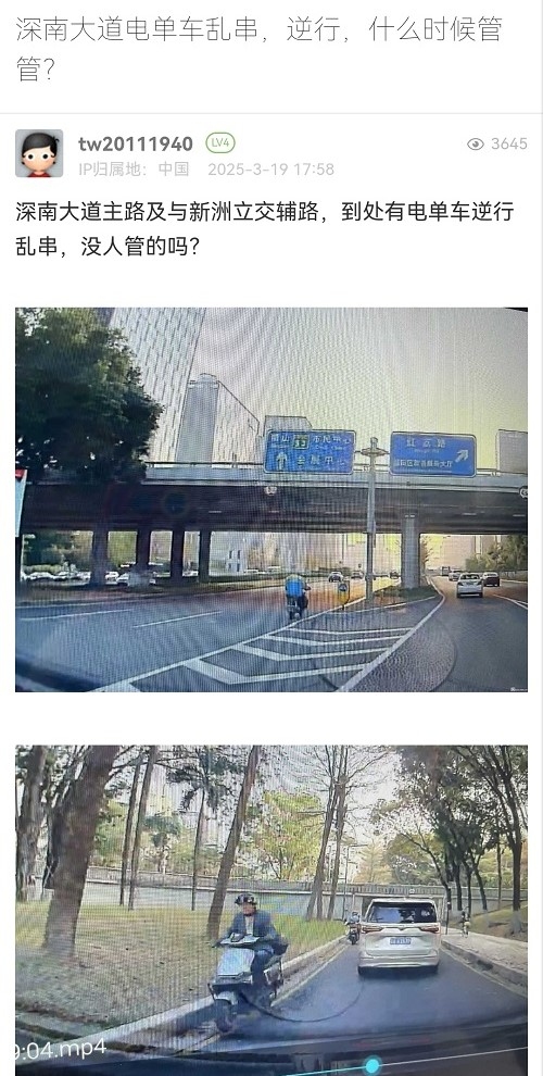 11. 帖文《深南大道电单车乱串,逆行,什么时候管管?》