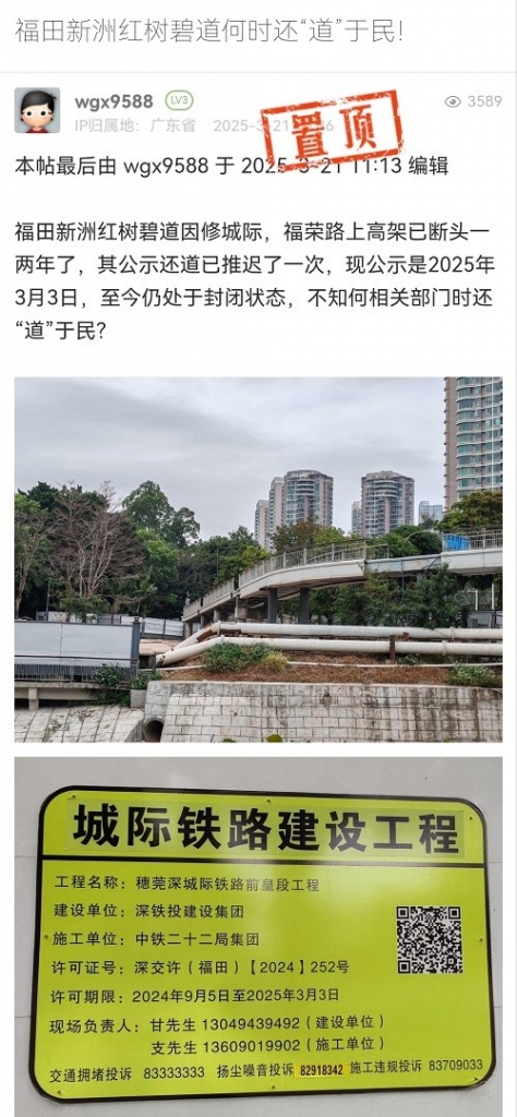 网友如有相关诉求、建言和意见的,可直接在深圳论坛“我说深圳事”栏目发帖进行报料、投诉,或者通过官方报料QQ以及问政热线等渠道反映诉求。