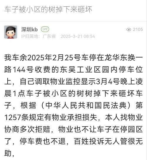 32. 帖文《车子被小区的树掉下来砸坏》