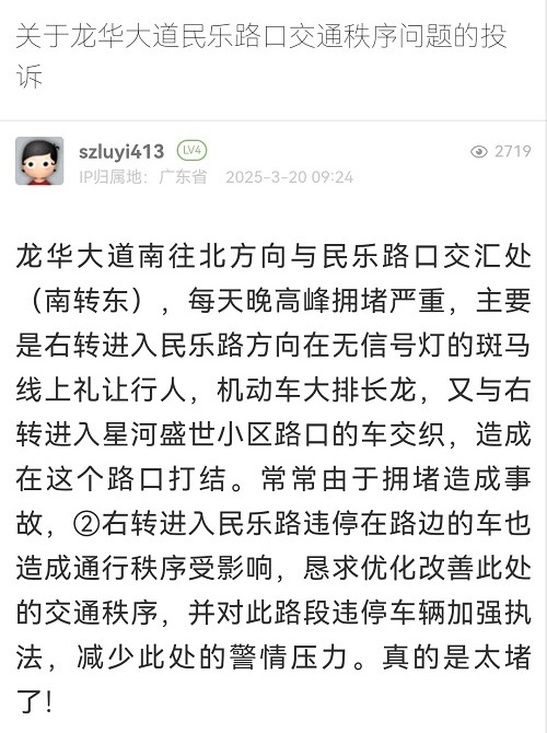 26. 帖文《关于龙华大道民乐路口交通秩序问题的投诉》