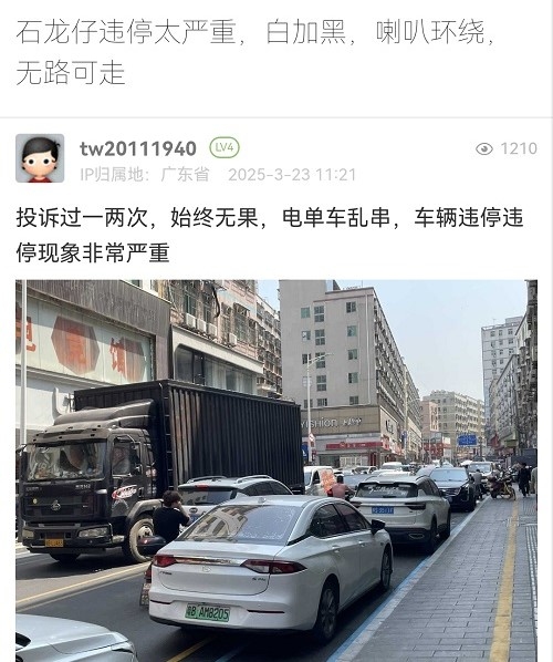 20. 帖文《石龙仔违停太严重,白加黑,喇叭环绕,无路可走》