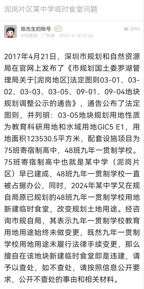 8. 帖文《泥岗片区某中学临时食堂问题》