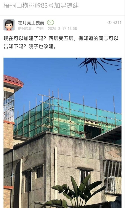 4. 帖文《梧桐山横排岭83号加建违建》