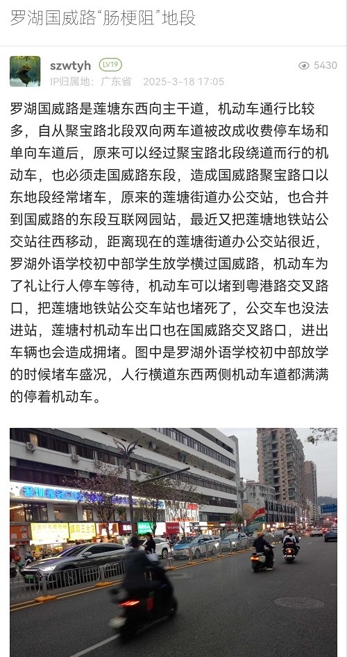 7. 帖文《罗湖国威路“肠梗阻”地段》