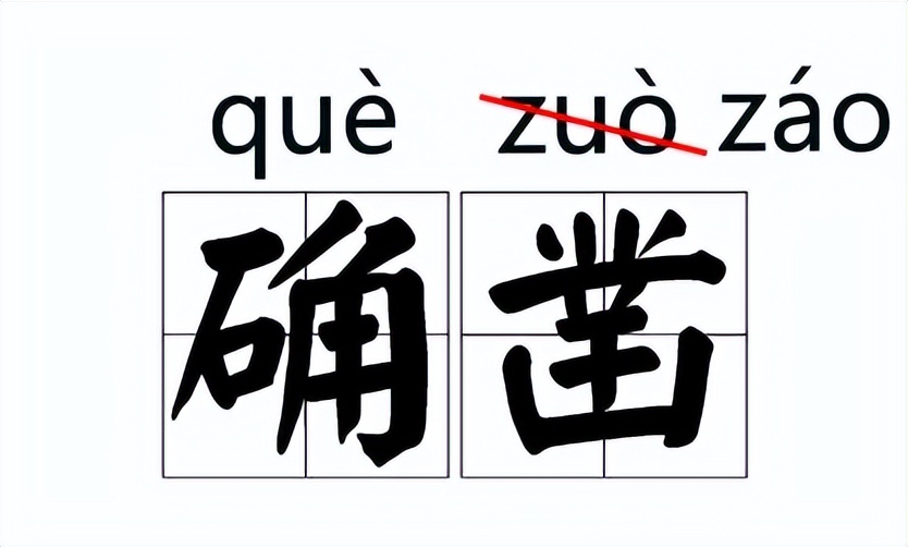 确凿(què záo),原读音:确凿(zuò)。后因从俗改为:确凿(záo)