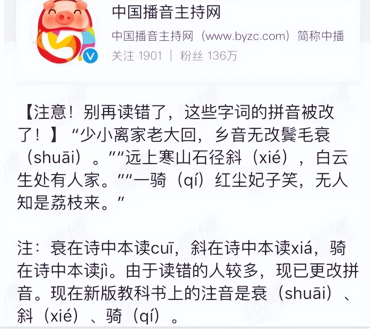 中国播音主持网就科普了很多被修订的读音