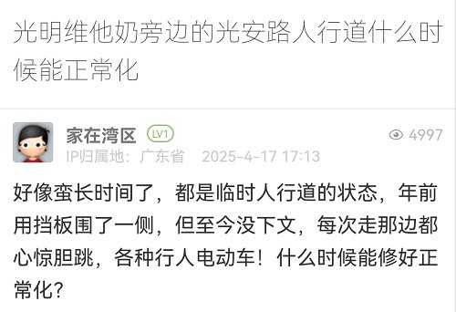 12. 帖文《光明维他奶旁边的光安路人行道什么时候能正常化》