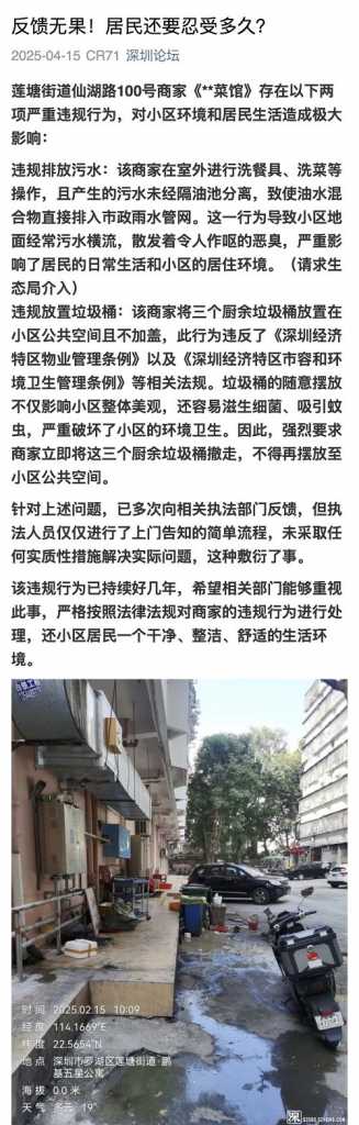3. 帖文《反馈无果!居民还要忍受多久?》