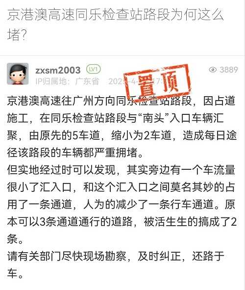 5. 帖文《京港澳高速同乐检查站路段为何这么堵?》