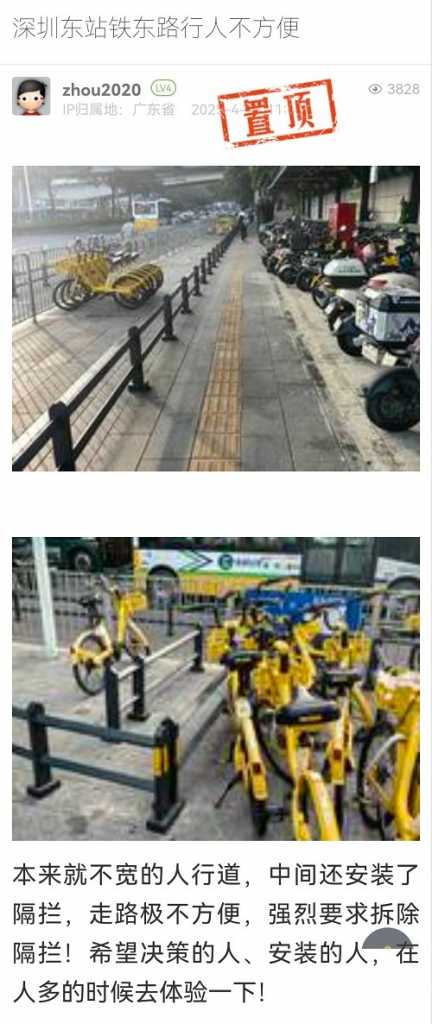 3. 帖文《吐槽一下西丽创科路的骑行道》