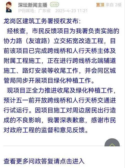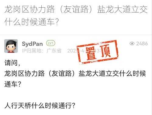24. 帖文《龙岗区协力路(友谊路)盐龙大道立交什么时候通车?》