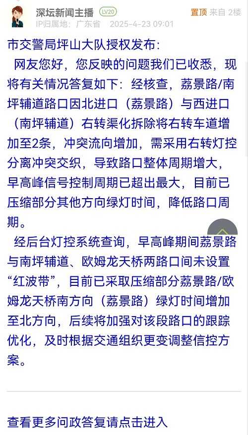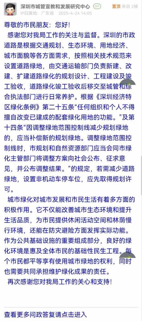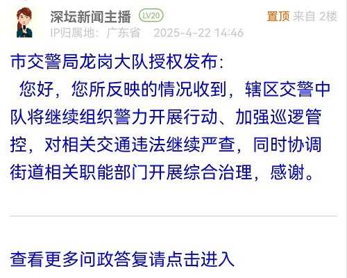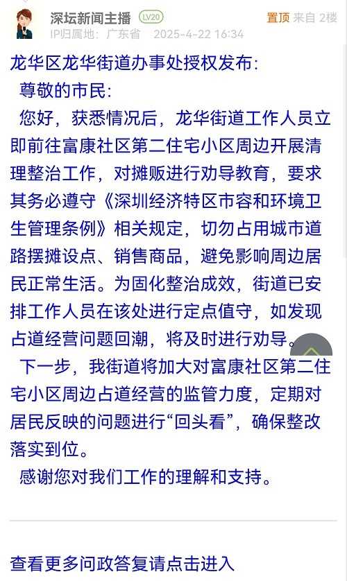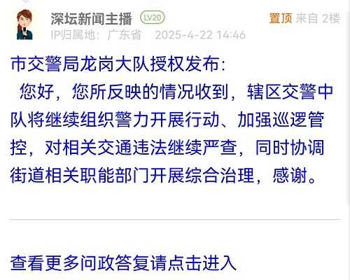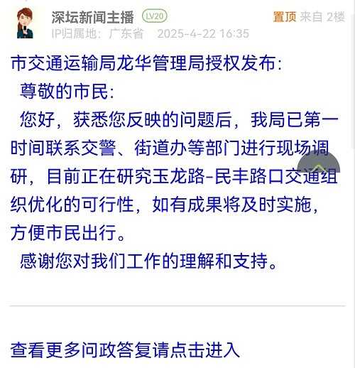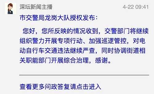 各职能单位如需对网友反映的问题进行回应,可在深圳论坛注册官方账号并通过认证,回帖进行回应。