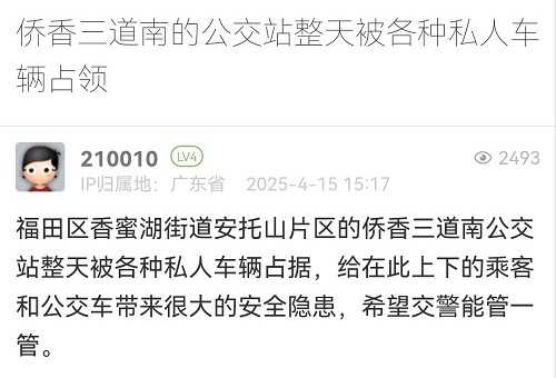 4. 帖文《侨香三道南的公交站整天被各种私人车辆占领》