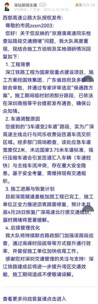 感谢您对深圳交通管理的关注与支持!深江铁路建成后将进一步提升湾区交通效能,施工期间造成不便敬请谅解。