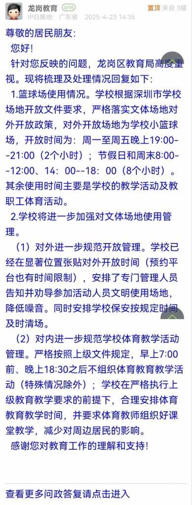 针对您反映的问题,龙岗区教育局高度重视。现将梳理及处理情况回复如下: