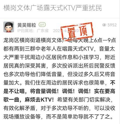 22. 帖文《横岗文体广场露天式KTV严重扰民》