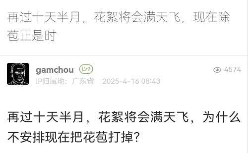 26. 帖文《再过十天半月,花絮将会满天飞,现在除苞正是时》