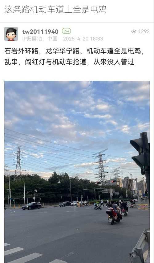 13. 帖文《深圳东站横穿马路冲灯的电动车》