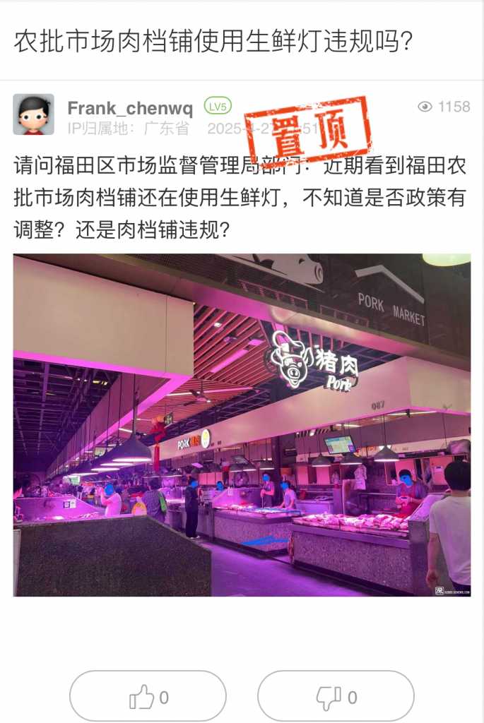 13. 帖文《农批市场肉档铺使用生鲜灯违规吗?》
