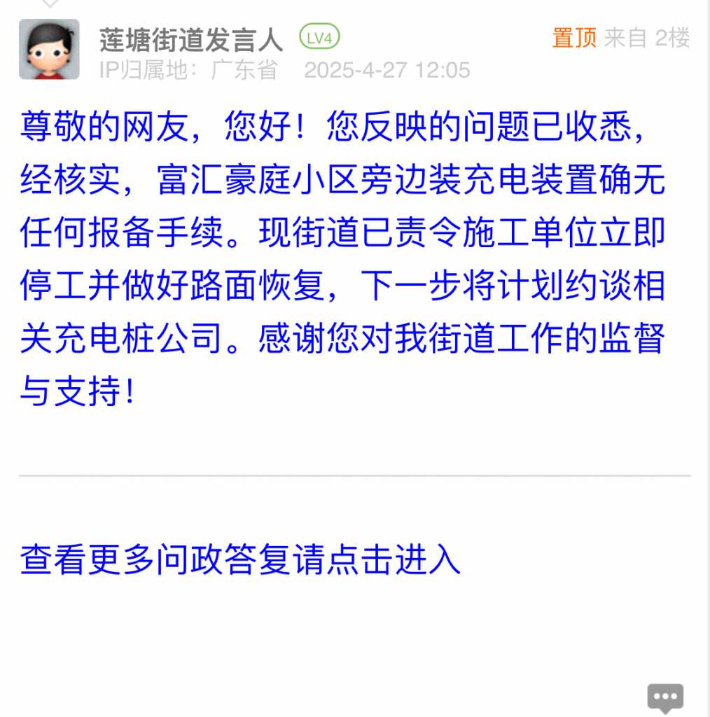 11. 帖文《富汇豪庭小区旁边装充电装置被红马甲发现检查》