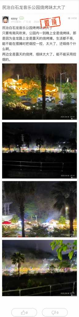 2. 帖文《民治白石龙音乐公园烧烤味太大了》