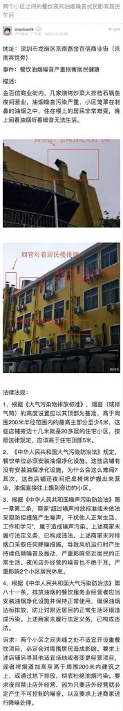 3. 帖文《龙岗金百信商业街噪音油烟太严重》