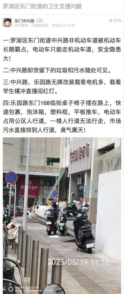 7. 帖文《罗湖区东门街道的卫生交通问题》