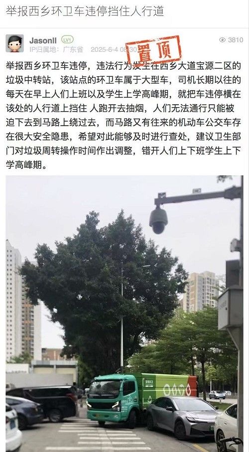 6. 帖文《举报西乡环卫车违停挡住人行道》