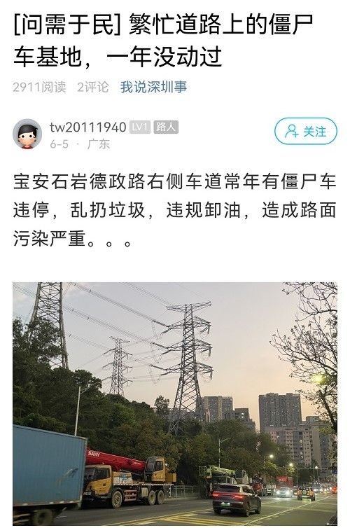 18. 帖文《繁忙道路上的僵尸车基地,一年没动过》