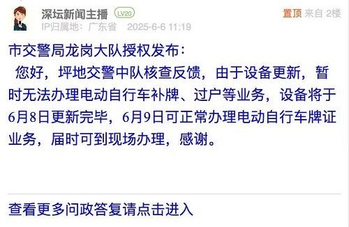 11. 帖文《关于龙岗电动单车车牌损坏重新上牌》