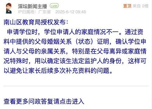 16. 帖文《南山区报名小学为什么需要证明婚姻状态?》