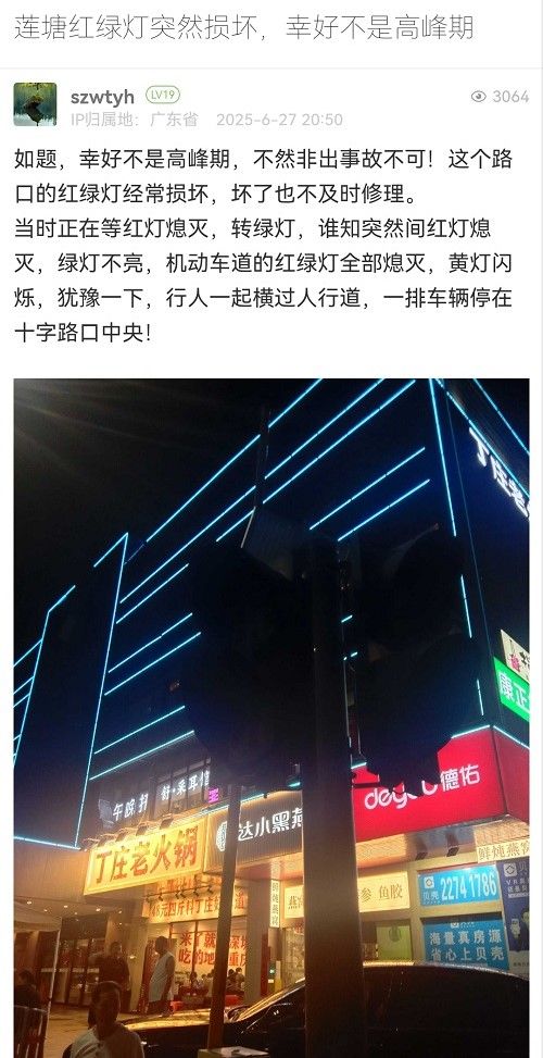 17. 帖文《莲塘红绿灯突然损坏,幸好不是高峰期》