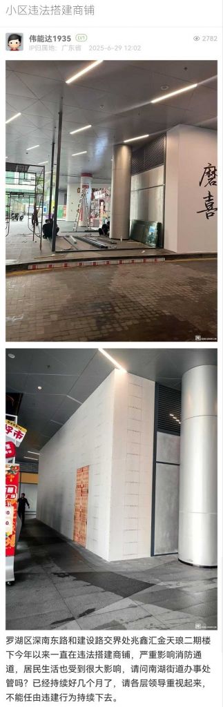 10. 帖文《投诉罗湖区莲塘街道国威路与仙湖路交汇处长期明显违建!(五)》