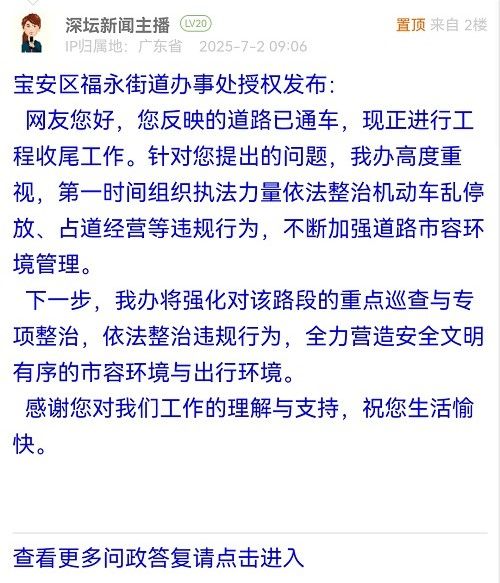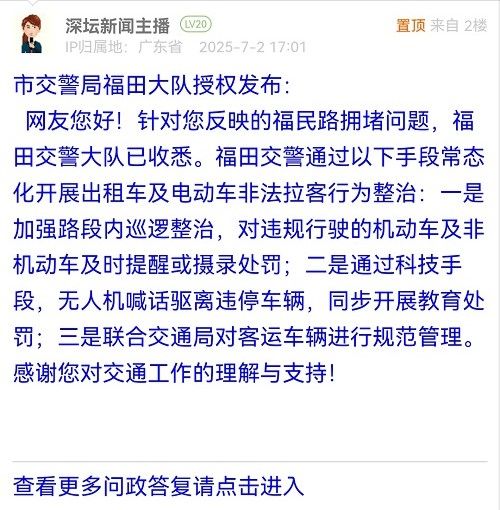 各职能单位如需对网友反映的问题进行回应,可在深圳论坛注册官方账号并通过认证,回帖进行回应。