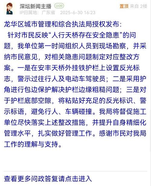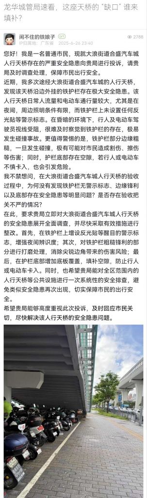 16. 帖文《龙华城管局速看,这座天桥的 “缺口” 谁来填补?》