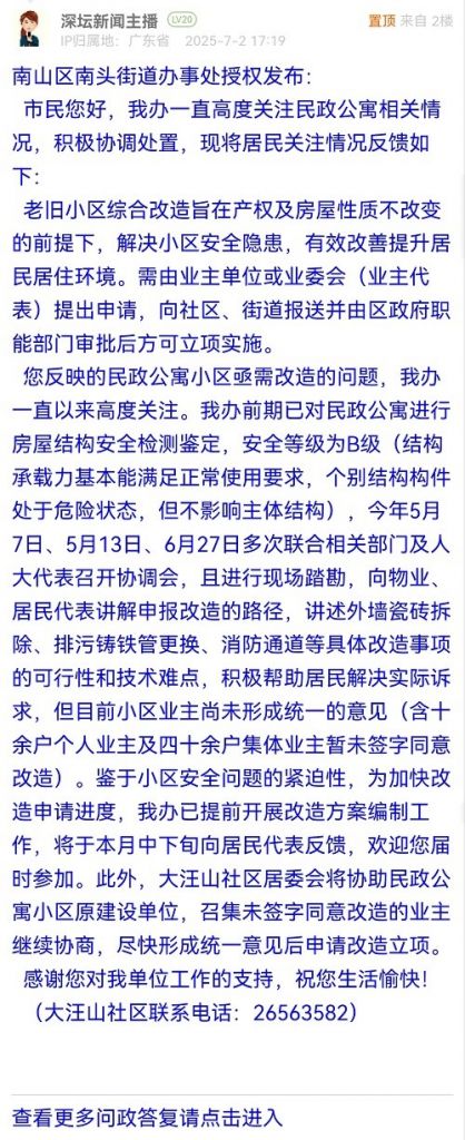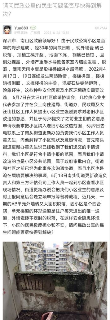 25. 帖文《请问民政公寓的民生问题能否尽快得到解决?》
