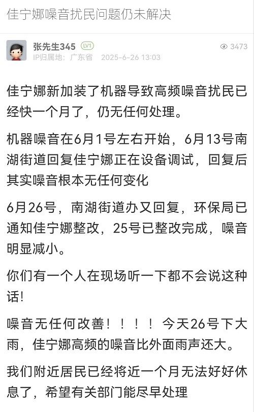 11. 帖文《佳宁娜噪音扰民问题仍未解决》