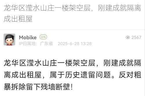 18. 帖文《龙华区滢水山庄一楼架空层,刚建成就隔离成出租屋》