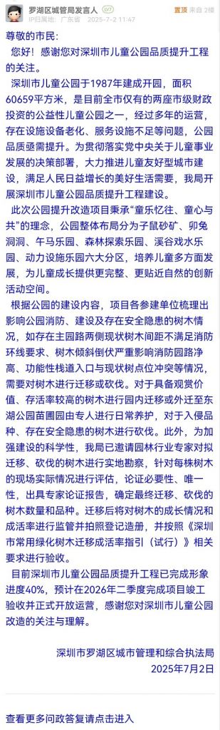 20. 帖文《儿童公园的改造竟然要动园内这么多棵树木》