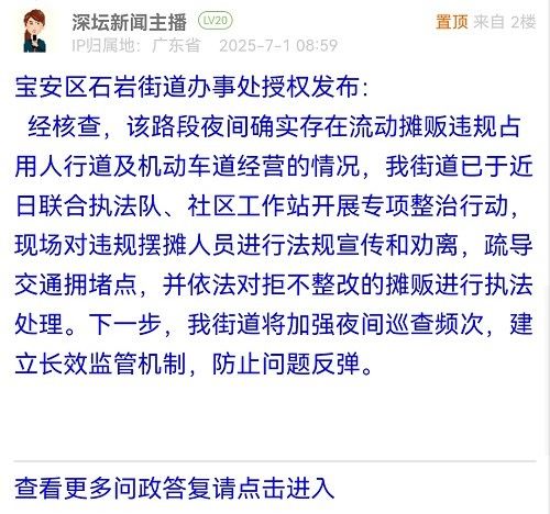 6. 帖文《石岩石龙仔德政路工业一路摆摊摆到大马路上》
